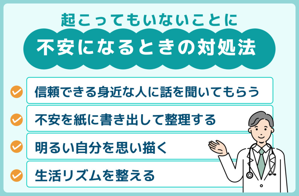 起こってもいないことに不安を感じるとき、まずは心と体をリラックスさせることを心がけましょう。