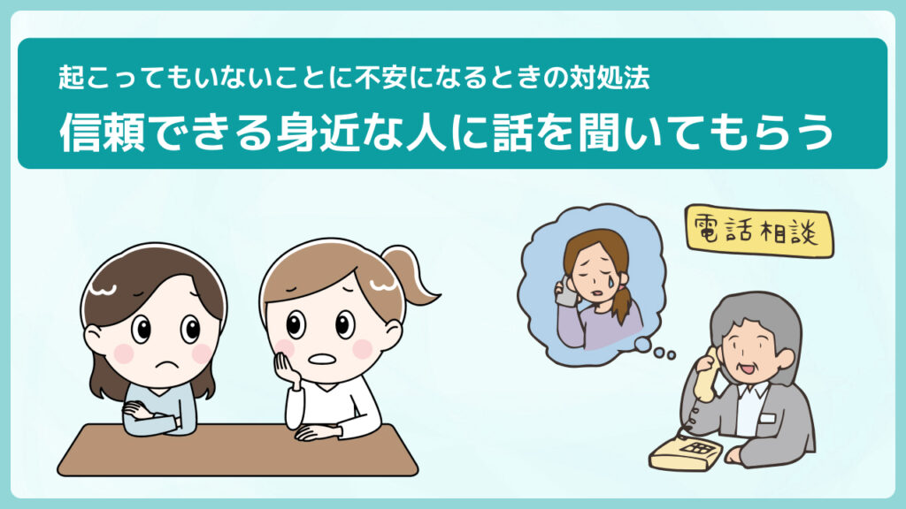 不安を感じた時、信頼できる身近な人に話を聞いてもらうことは、不安を和らげるのに非常に効果的です。