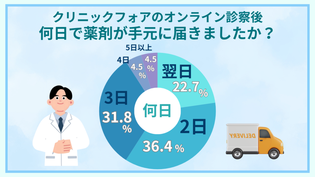アンケートの結果を見ると、診察後「3日以内に届いた」という人がほとんどでした。