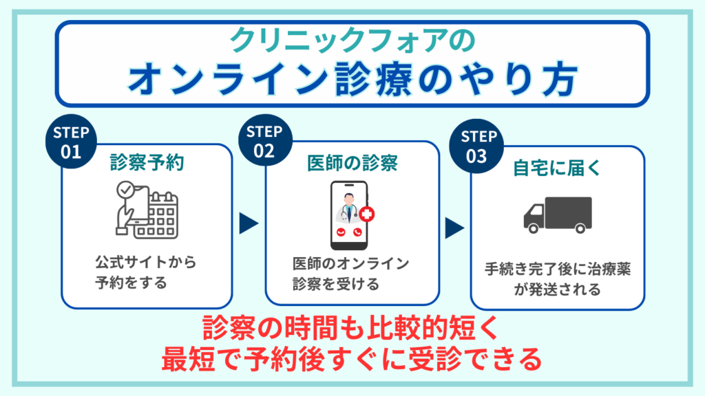 画像引用元:クリニックフォア公式サイト クリニックフォアのオンライン診療は、公式サイトから簡単に予約できます。