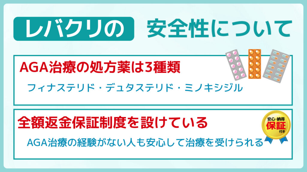 レバクリでは、AGA治療を初めて受ける人でも安心して始められるよう、全額返金保証制度を用意しています。