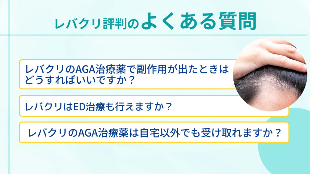 レバクリでは、医師の診察をもとにAGA治療薬を処方していますが、体質や体調によっては副作用が現れる可能性があります。