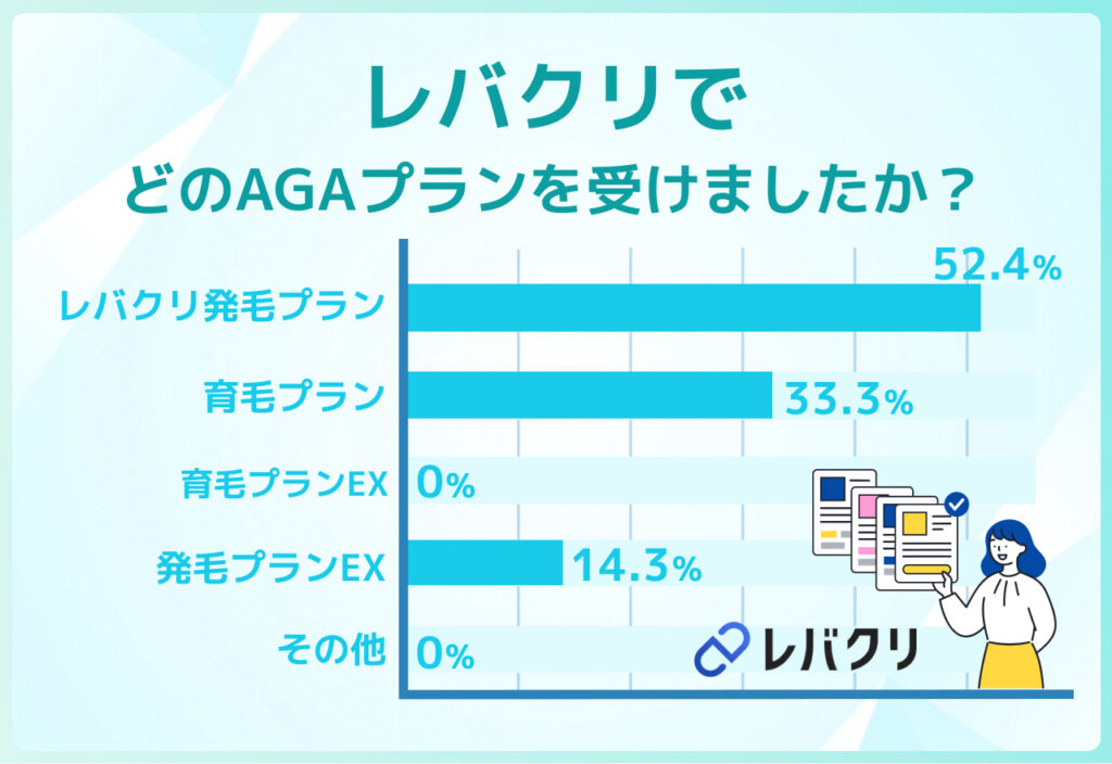 レバクリで受けたAGAプランについては、レバクリ発毛プランが21人中11名と最も多い結果となりました。