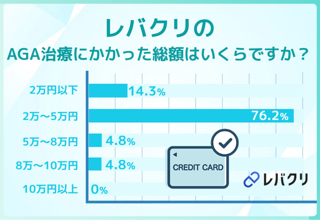 レバクリのAGA治療にかかった費用については、21名中19名が総額5万円以下だったとしています。