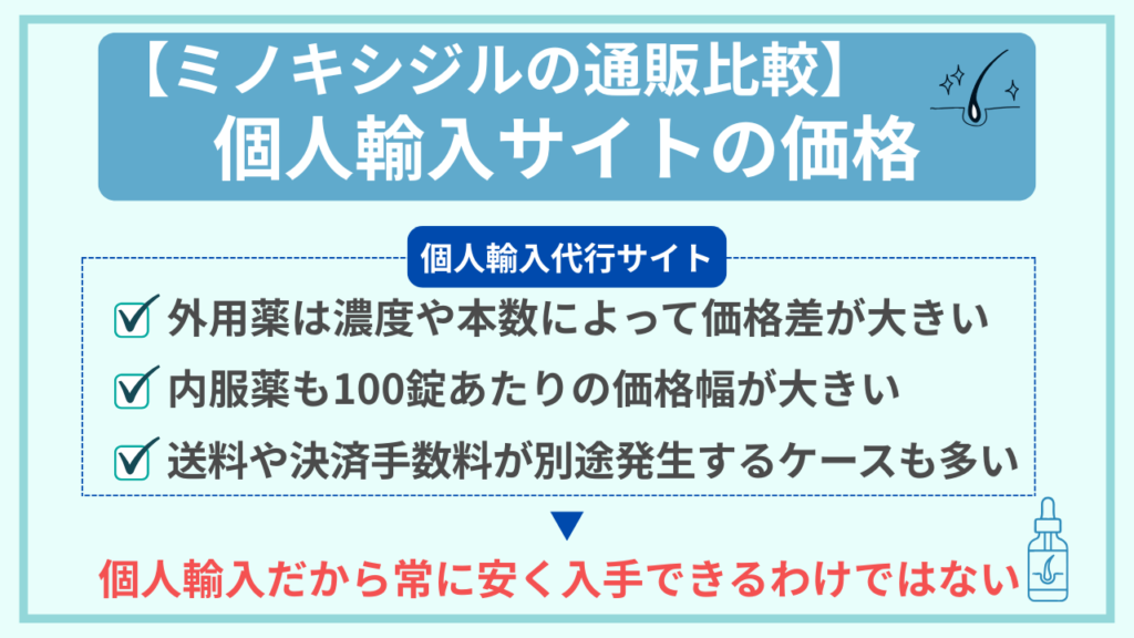 ミノキシジルを使ったAGA対策を検討する際、「通販や個人輸入のほうが安いのでは」と考える人は少なくありません。