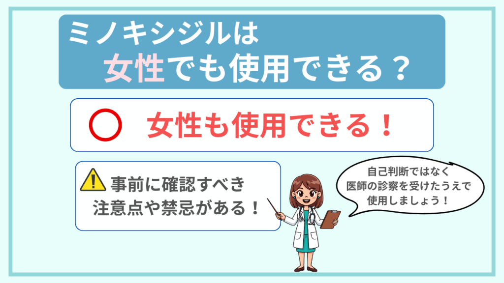 ただし、男性用とは濃度や使用方法が異なり、注意すべき点も少なくありません。
