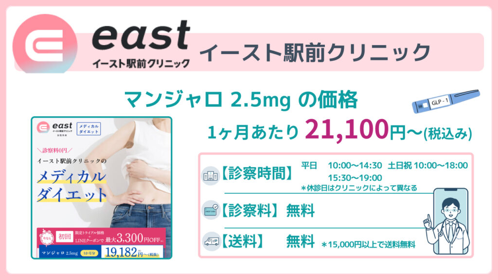 イースト駅前クリニックのマンジャロは、用量や購入方法に応じて複数のプランが用意されています。