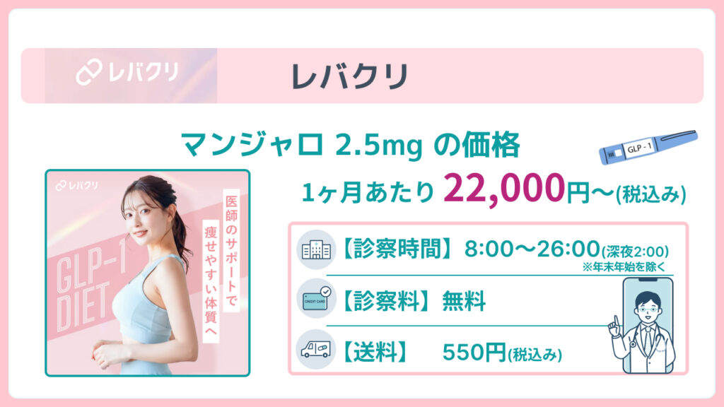 レバクリは、マンジャロをはじめとした医療ダイエット治療薬に対応するオンライン診療プラットフォームです。