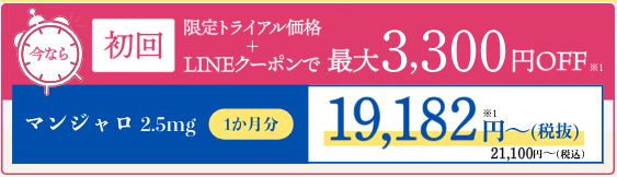 マンジャロ(2.5mg)▶ 初回トライアル+LINEクーポン適用で21,000円~(税込み)!