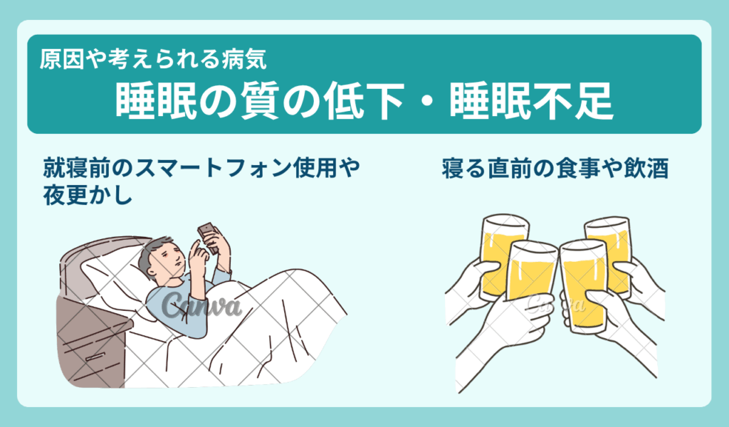 特に睡眠の質の低下やストレス、疾患が原因となるケースが多です。