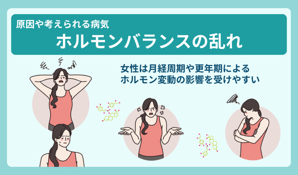 ホルモンバランスの変動や自律神経の影響が関与している可能性が考えられます。