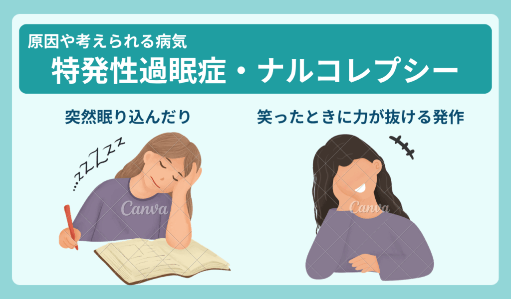ナルコレプシーなど神経系の疾患が疑われるため、専門的な検査が必要になることがあります。