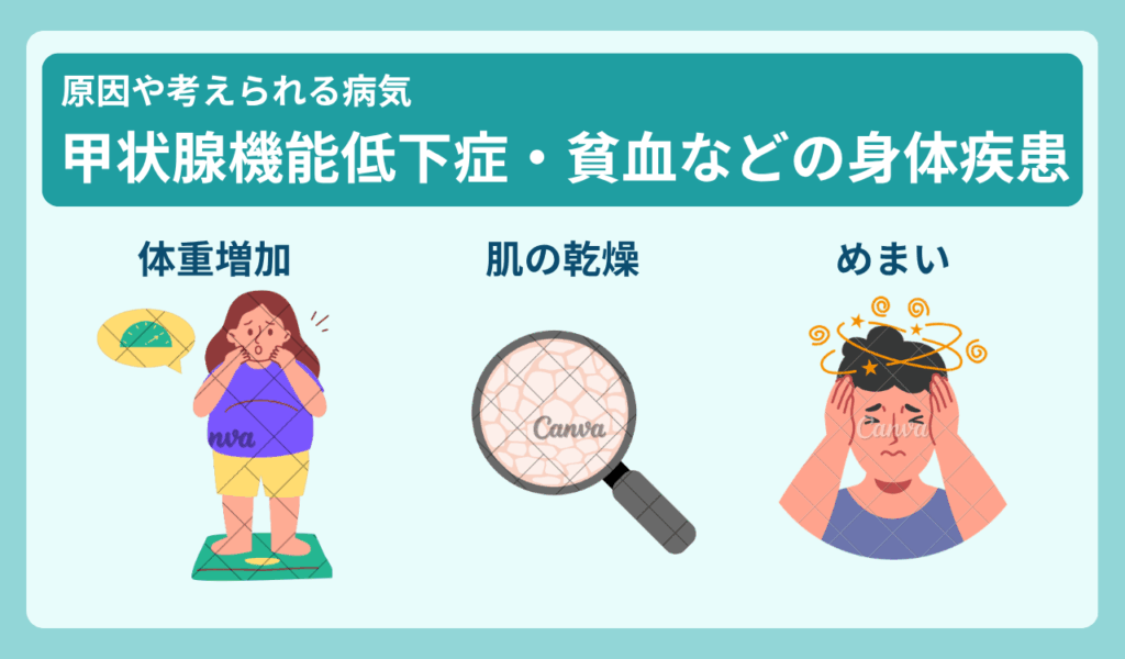 甲状腺機能低下症や貧血など、血液検査で確認できる疾患が隠れていることがあります。