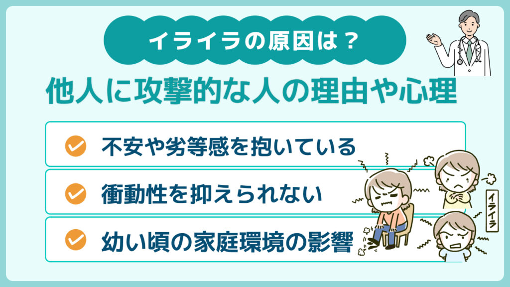 他人に攻撃的になってしまう背景には、単に性格の問題だけではなく、心の状態や過去の経験が関わっていることがあります。