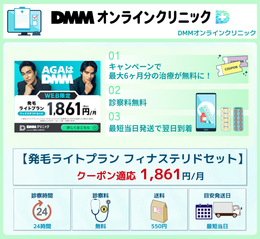 DMMオンラインクリニックは、手頃な価格でAGA治療を始められ、利用者からの評価も高いオンライン診療クリニックです。