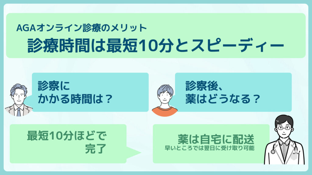 診察自体は最短10分ほどで完了するため、空いた時間に手軽に受けることが可能。