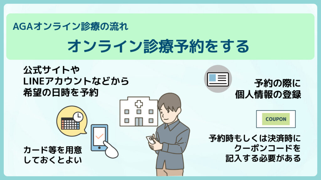 AGA治療のオンライン診療の流れは、設定など細かな部分はクリニックごとに異なりますが、大まかな流れは変わりません。