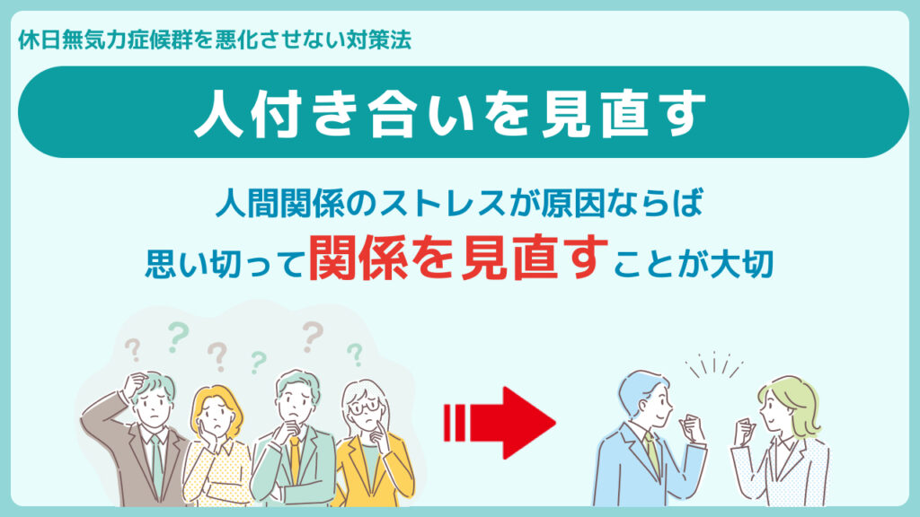 もし人間関係でのストレスが原因になっているならば、必要以上に気を使う関係から距離を置くことも大切です。