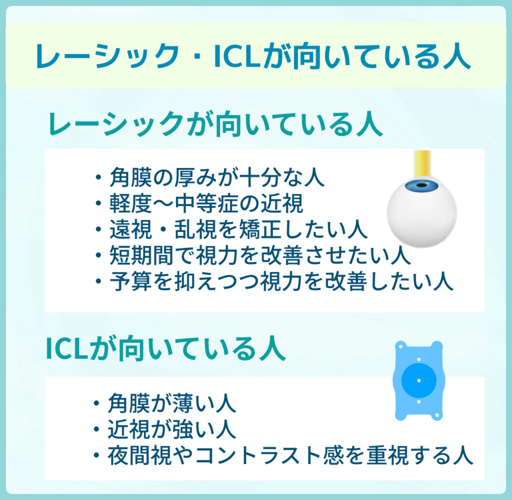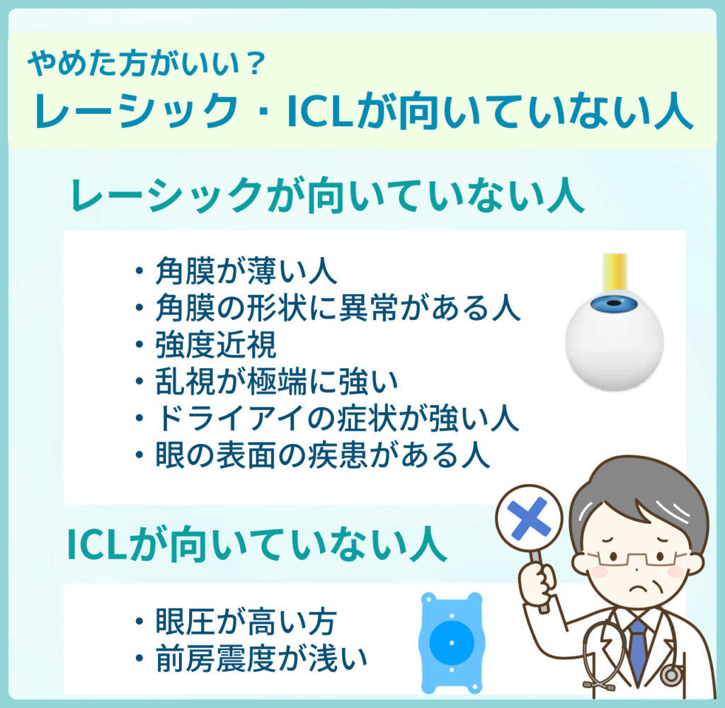 ここではレーシック・ICLのそれぞれで向いていない人の特徴を整理します。