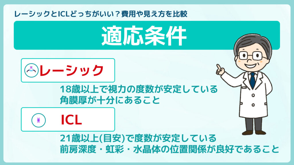 ここではレーシックとICLそれぞれの代表的な適用条件について分かりやすく解説します。