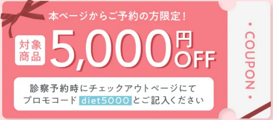 2.5mgの1ヶ月分らくらく定期便ではクーポンが利用可能なので、マンジャロの治療をDMMオンラインクリニックでスターとする場合は利用するとよいでしょう。