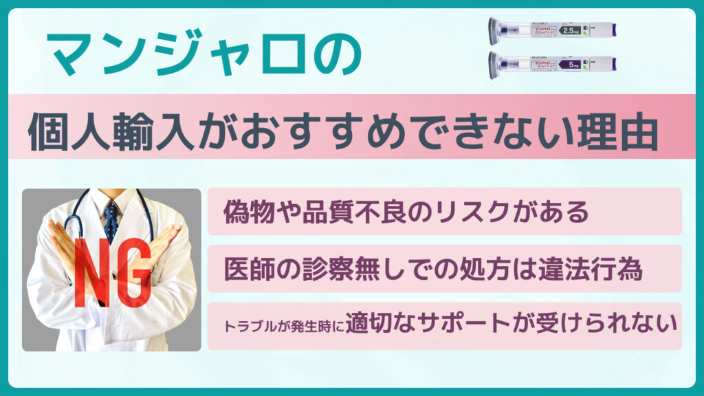 処方するマンジャロは国内正規品のみを提供すると明記されており、安心して利用できる点も大きなメリットです。